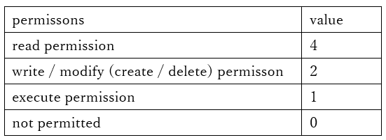 Read, write, and execute permissions are directed to the “owning user”, “owning group”, and “other users”.