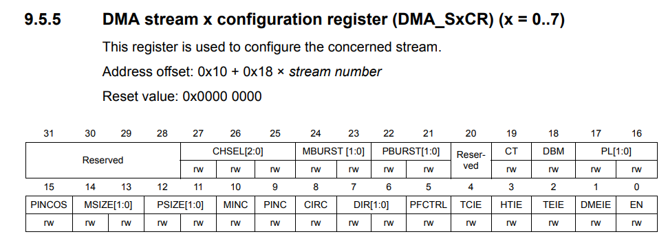 Setting registers DMA_SxCR (x=0-7)