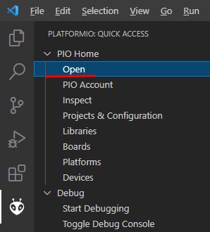 その一番下に追加されたアイコンをクリックして PlatformIO を起動します。