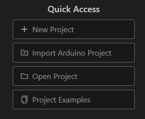 出てきたメニュー PIO Home の下の Open を選択し右側にある Quick Access にプロジェクト名などを入力していきます。