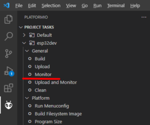PlatformIOのツリーからMonitorを選択します。