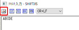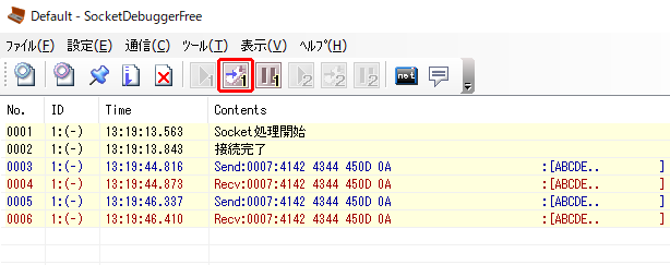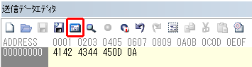 送るデータ(ここでは ABCDE + Enter としました)を入力し、一番左のアイコンをクリックします。