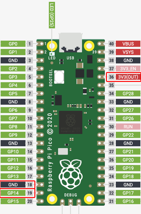(注)Picoprobeではなくターゲットボードに配線してください。