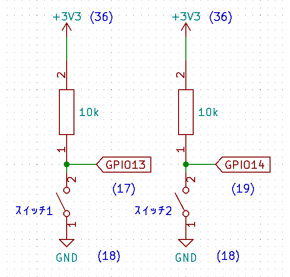 スイッチは押しボタン、タクトスイッチ等を使います。