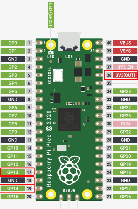 私は赤枠で囲んだ4か所の端子を使いました。