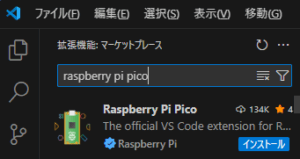 同様に検索バーに raspberry pi pico と入力し、候補に出てきた Raspberry Pi Pico のインストールボタンを押します。