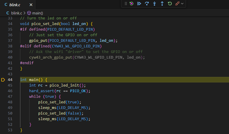 少し待つと画面中央のエディタ部分に New Example Pico Project が表示されます。