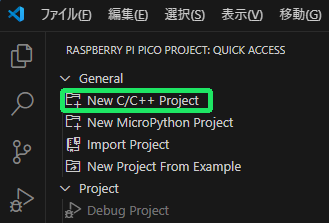 サイドバーに RASPBERRY PI PICO PROJECT: QUICK ACCESS が表示されるので、