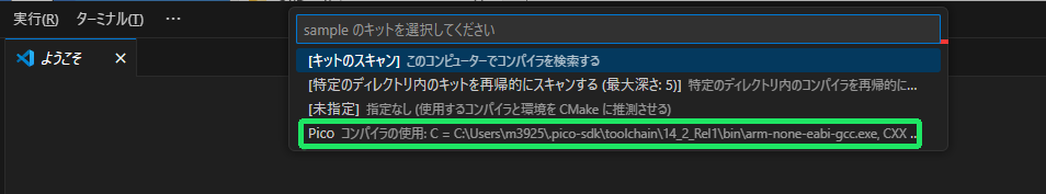 キットを選択するように言われるので、一番下の Pico … を選択します。