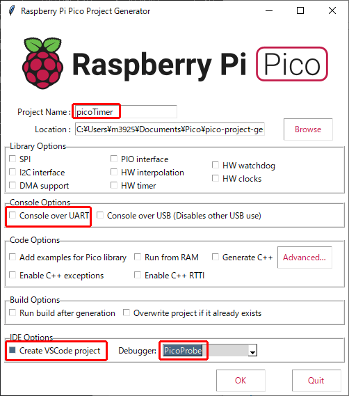 こちらの環境では C:\Users\m3925\Documents\Pico\pico-project-generator\picoTimer です。