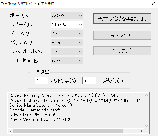 インストール後、 Tera Term を起動し、シリアルポートでPicoprobeのCOMポートを選択します。