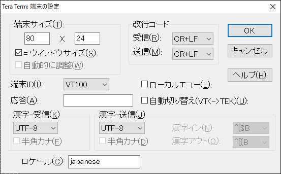 起動後、設定メニューのシリアルポートから以下の設定を行います。