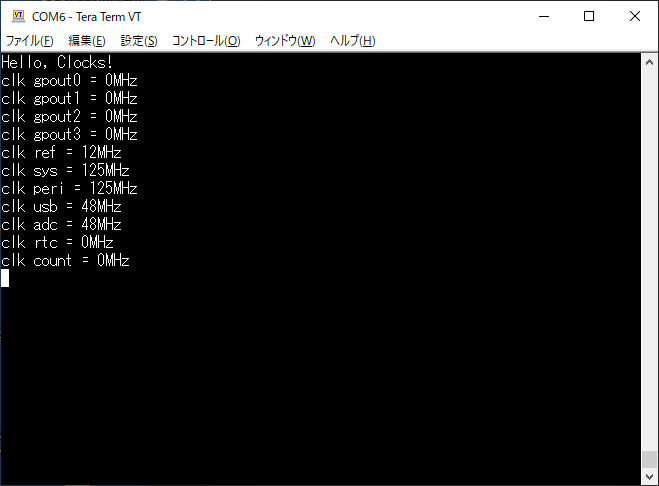 Tera Term に読み込んだクロックが表示されれば成功です。