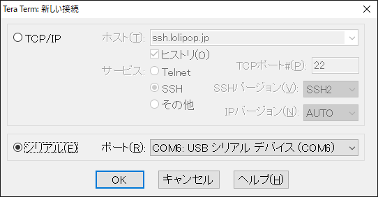 インストール後、 Tera Term を起動し、シリアルポートでPicoprobeのCOMポートを選択します。