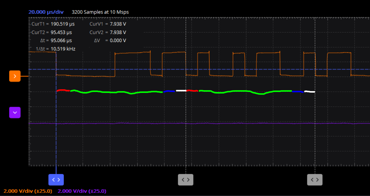 思惑通りのフォーマットになっているか波形を観測してみました。