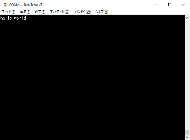 UARTを使って文字列を送信し、PCのターミナルソフトで受信して表示します。
