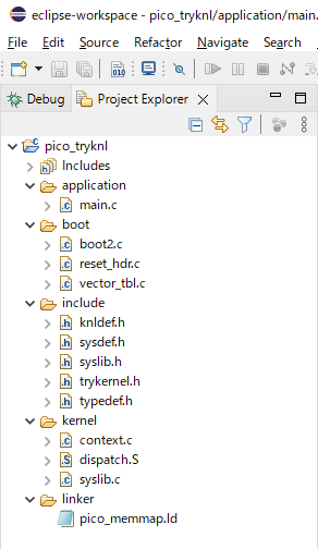 C:\DevTools\src\IF2307TK\part_3\sect_1 下にある以下のフォルダを全て選択して、IDEの Project Explorer の pico_tryknl にドラッグ&ドロップします。